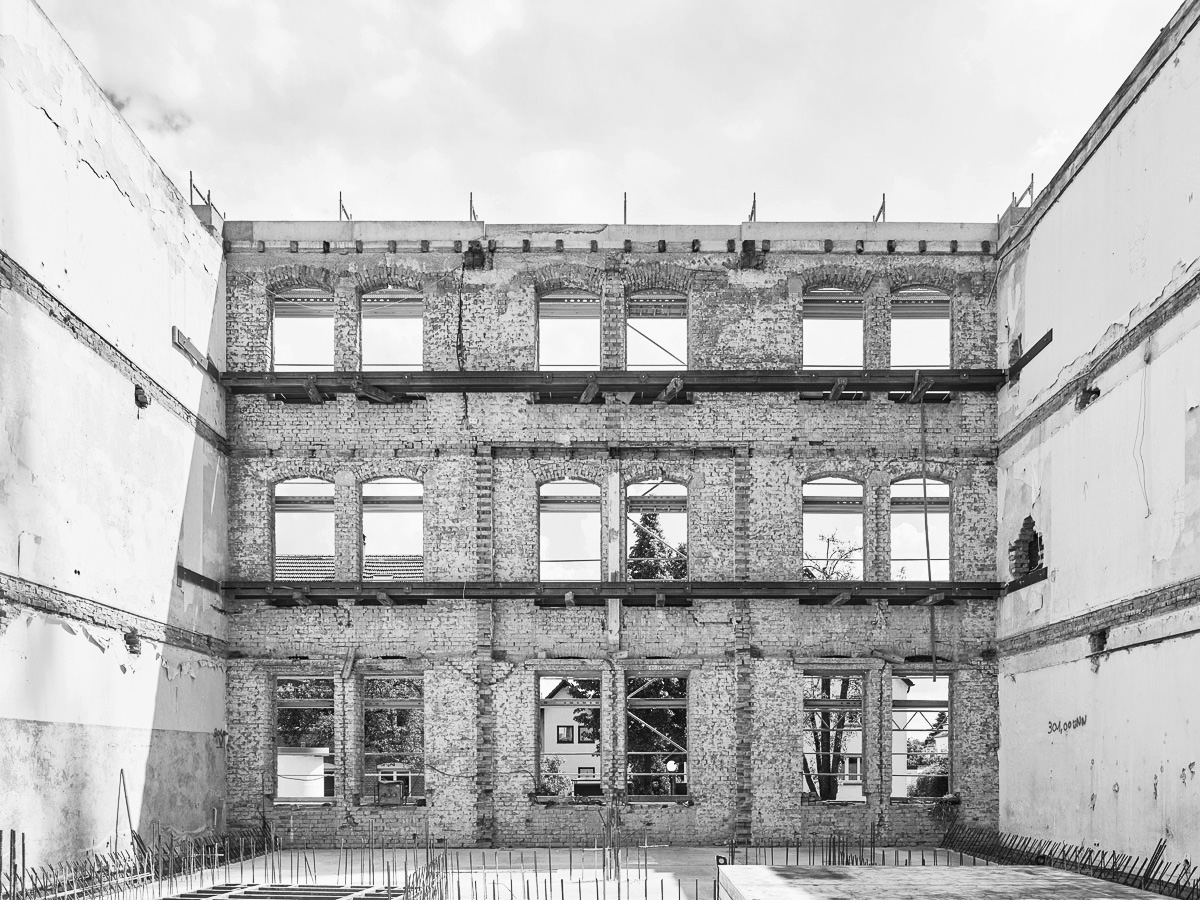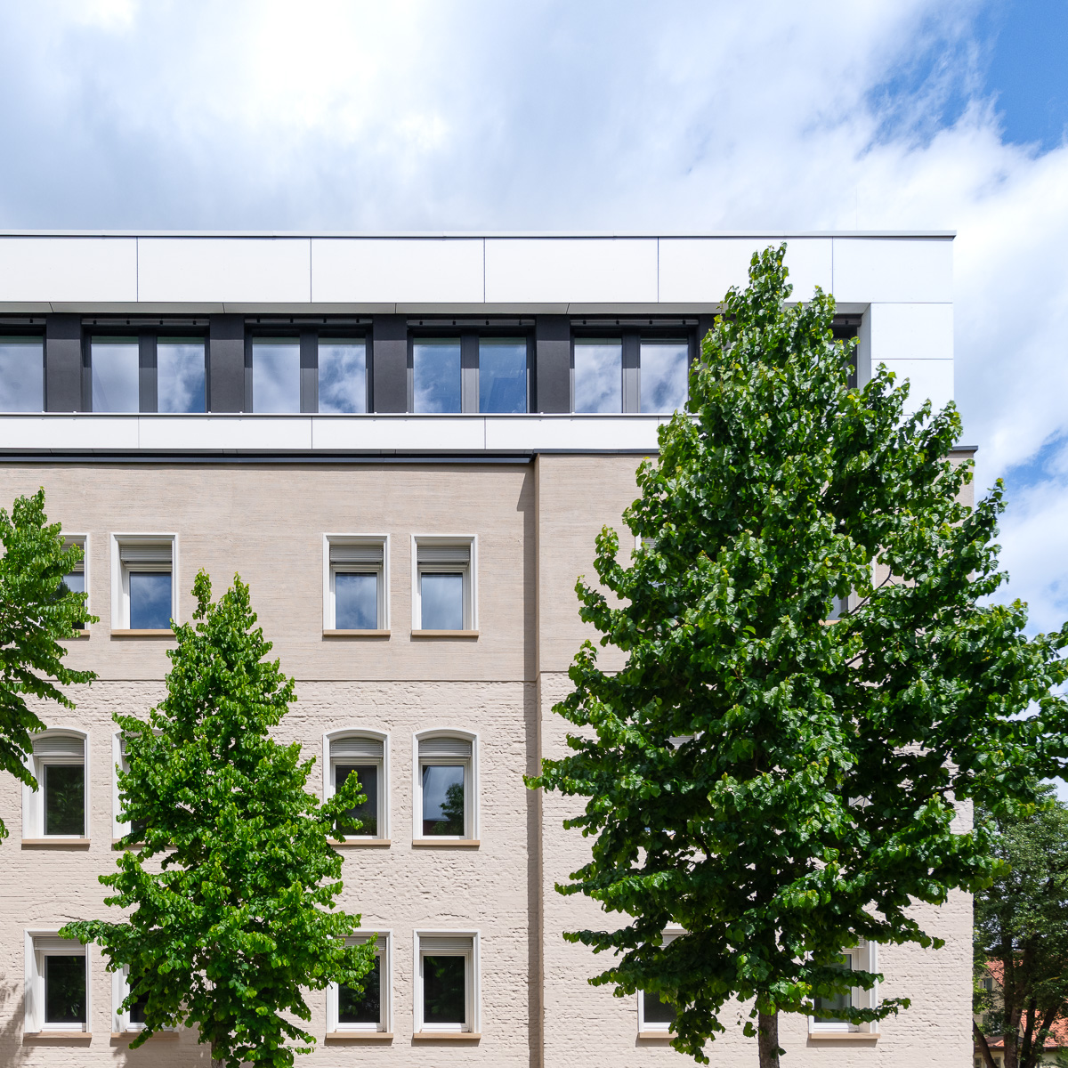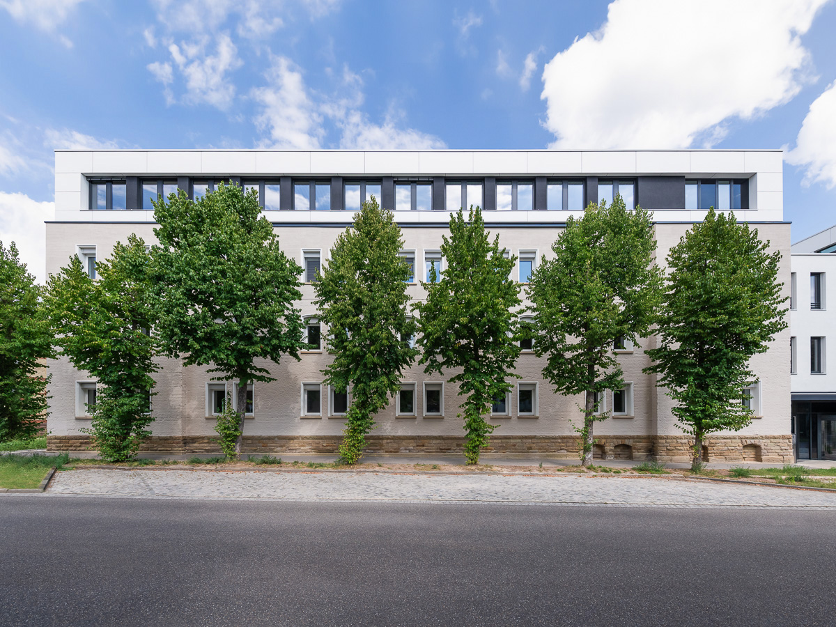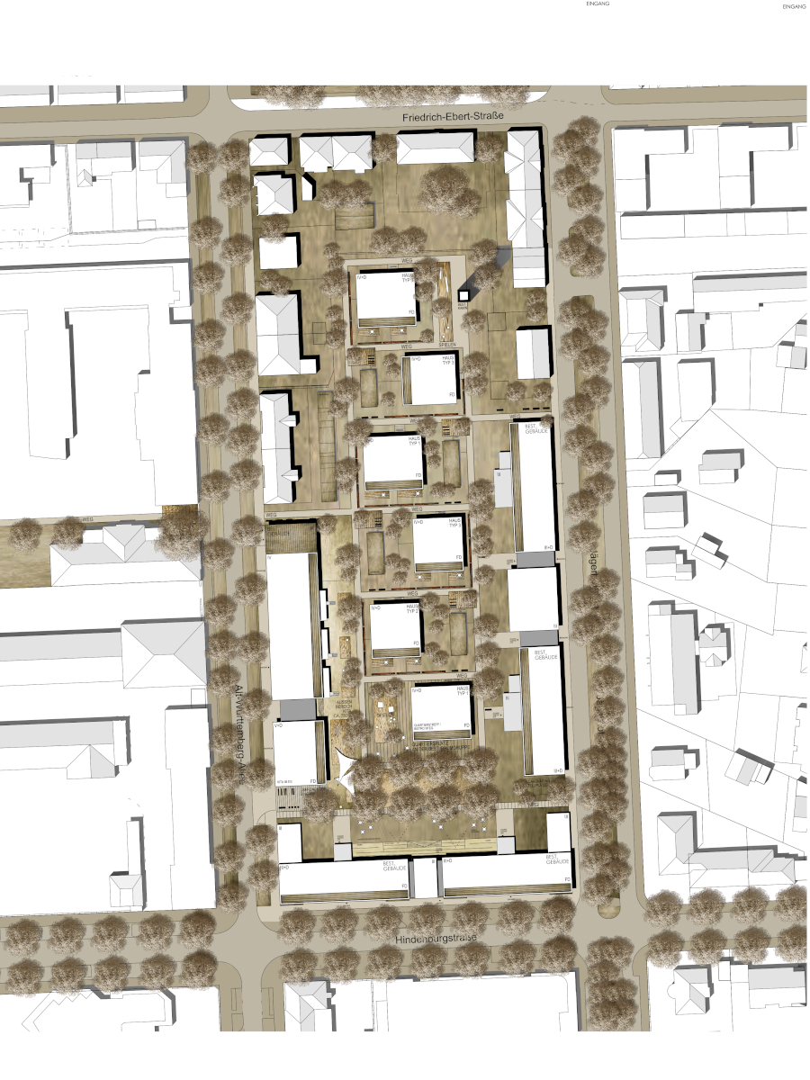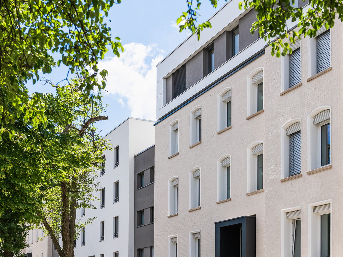 Konversion der ehemaligen Jägerhofkaserne zu einem neuen Stadtquartier mit 161 Wohneinheiten in unterschiedlicher Größe, einer 4-gruppigen KITA, ca. 3.900m² Büro-, bzw. Gewerbeflächen und einer gemeinschaftlichen Tiefgarage.  Ansatz einer Sichtbarwerdung und Visualisierung historischer baulicher Entwicklungen, Schichtungen und Texturen. Im geschichtlichen Kontext werden diese Phasen herausgearbeitet, weiterentwickelt und ergänzt. Historische Identität steht im Spanungsfeld von Bestandsstrukturen und Neubauten. Erlebbar geschichtliche Prozesse werden fortgeführt und mit der Neuordnung, Umstrukturierung von Alt und Neu zu einem Ganzen stimmig zusammengeführt.